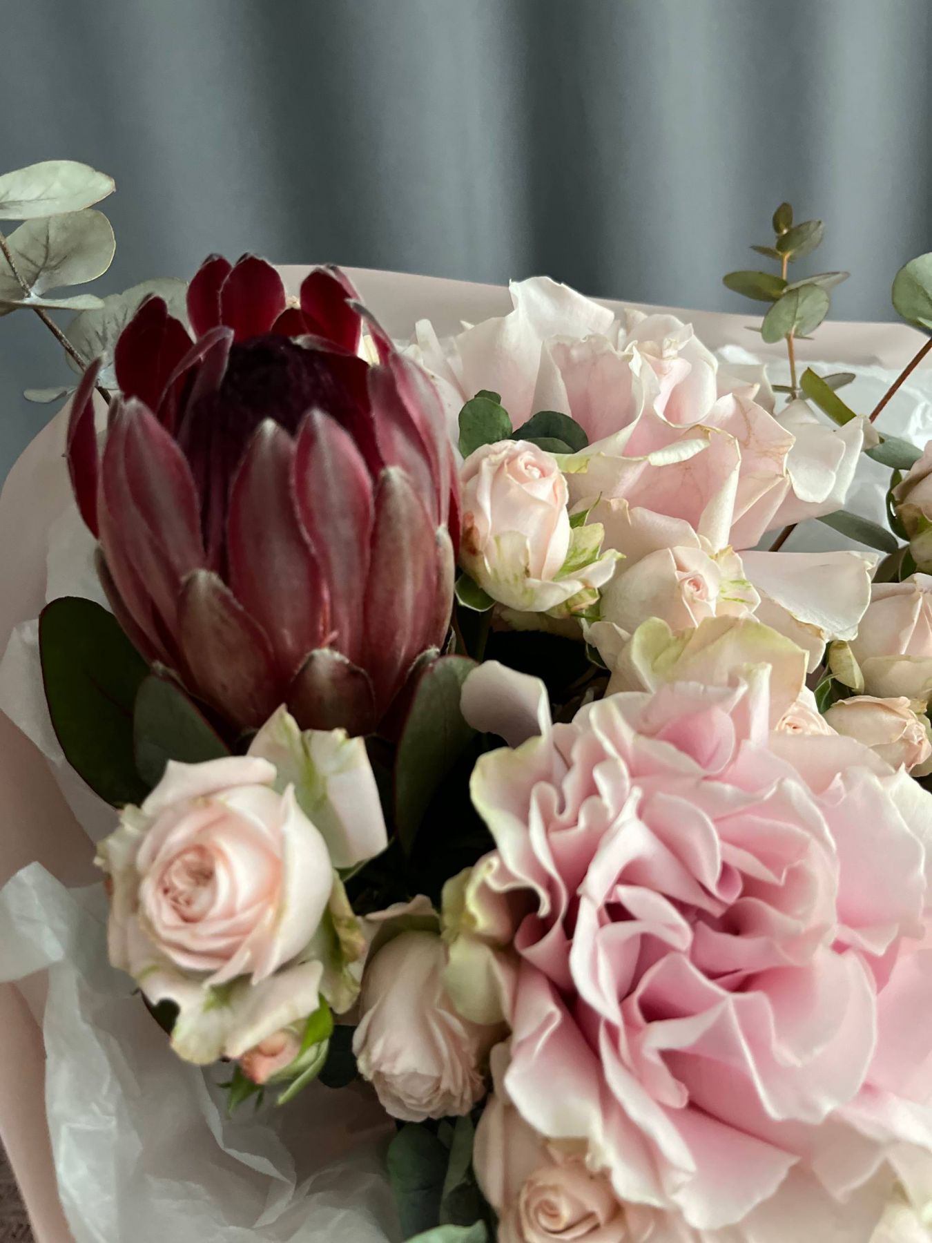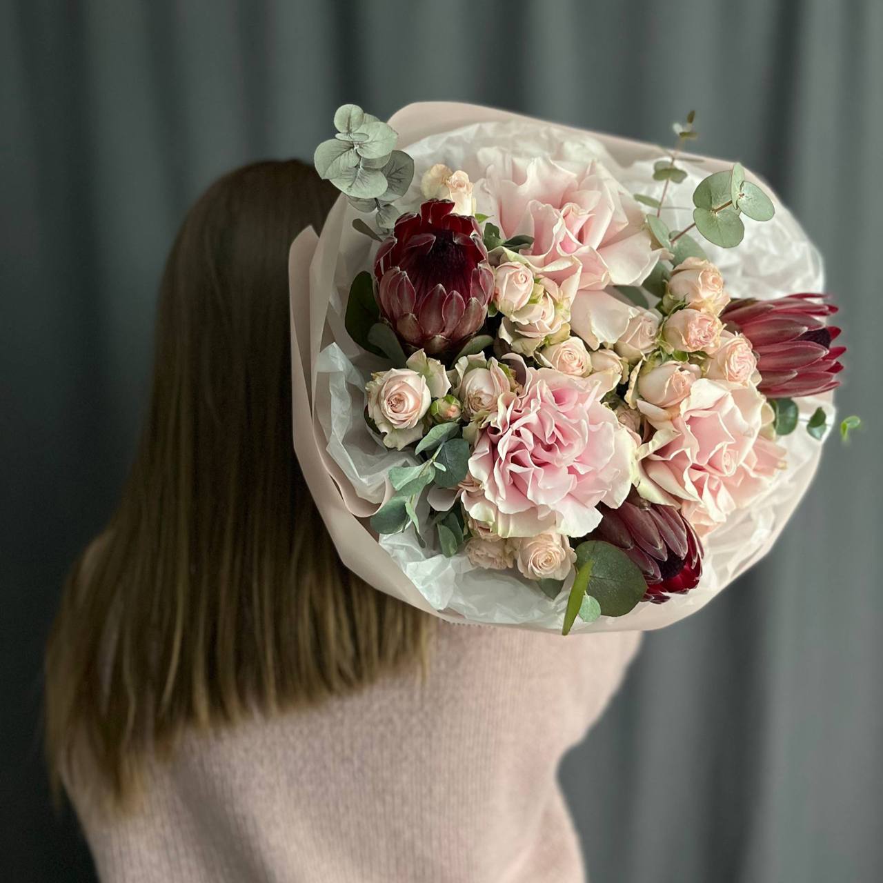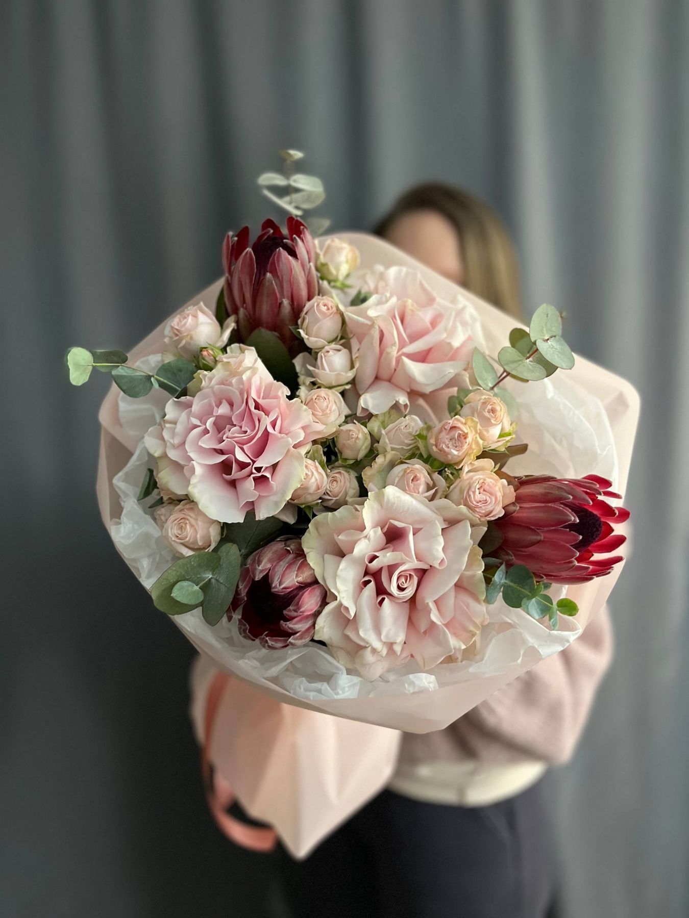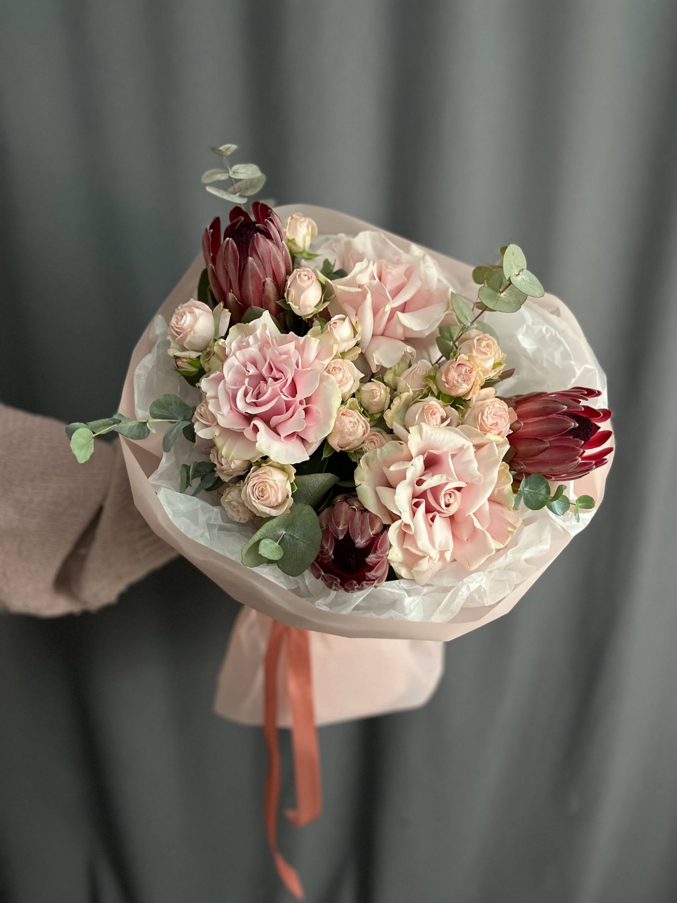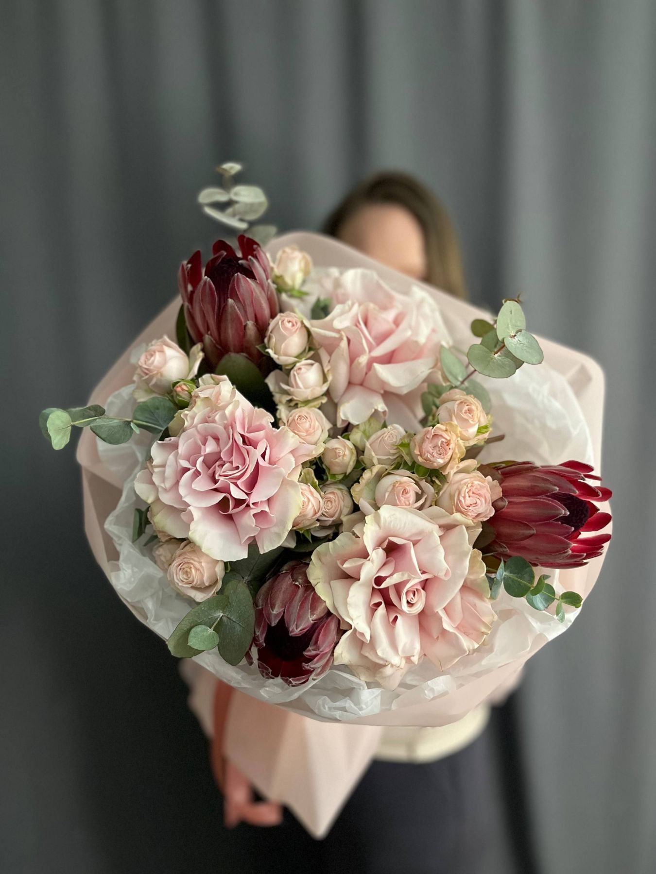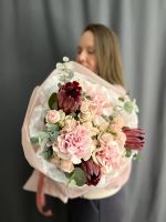 Пышная, богатая и щедрая композиция. Игра фактур, объём и праздничное сочетание оттенков создают атмосферу всеобщего ликования, большого события и безудержного веселья. Подойдет абсолютно всем!