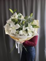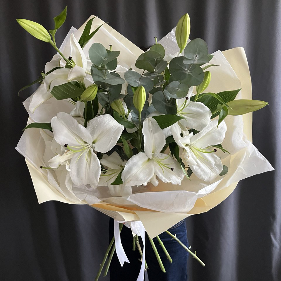 Белые лилии — символ чистоты и благородства. Идеальный выбор для выражения нежных и искренних чувств. Подойдут для подарка возлюбленной, невесте на свадьбу, в качестве торжественного поздравления или как знак светлой памяти. Их элегантность и тонкий аромат подчеркнут значимость любого момента.