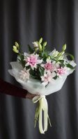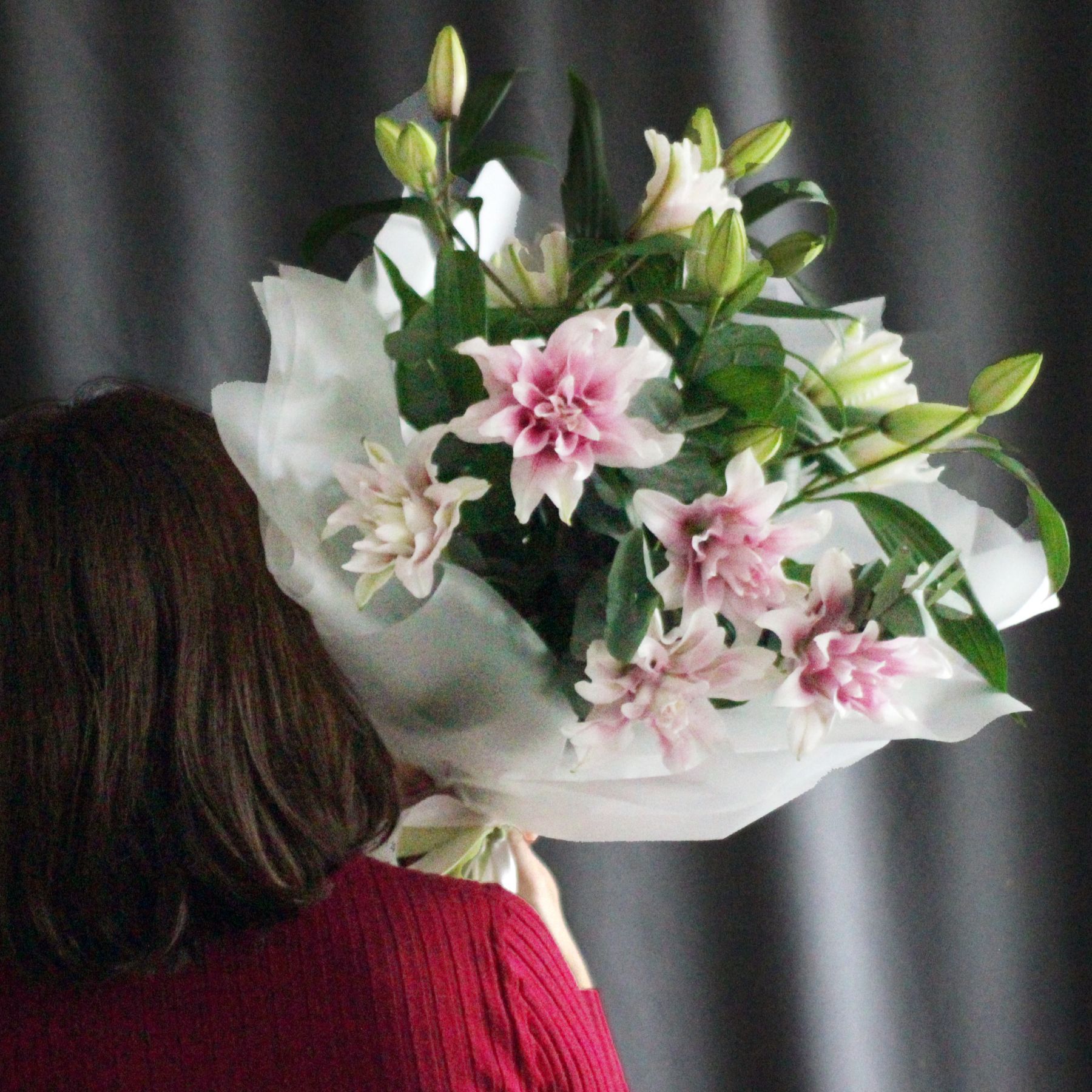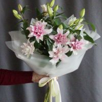 Очаровательный букет из махровых лилий- это идеальный выбор, чтобы порадовать коллегу, девушку, маму или просто близкого человека. Подойдет, как для особго случая, так и в качестве комплимента