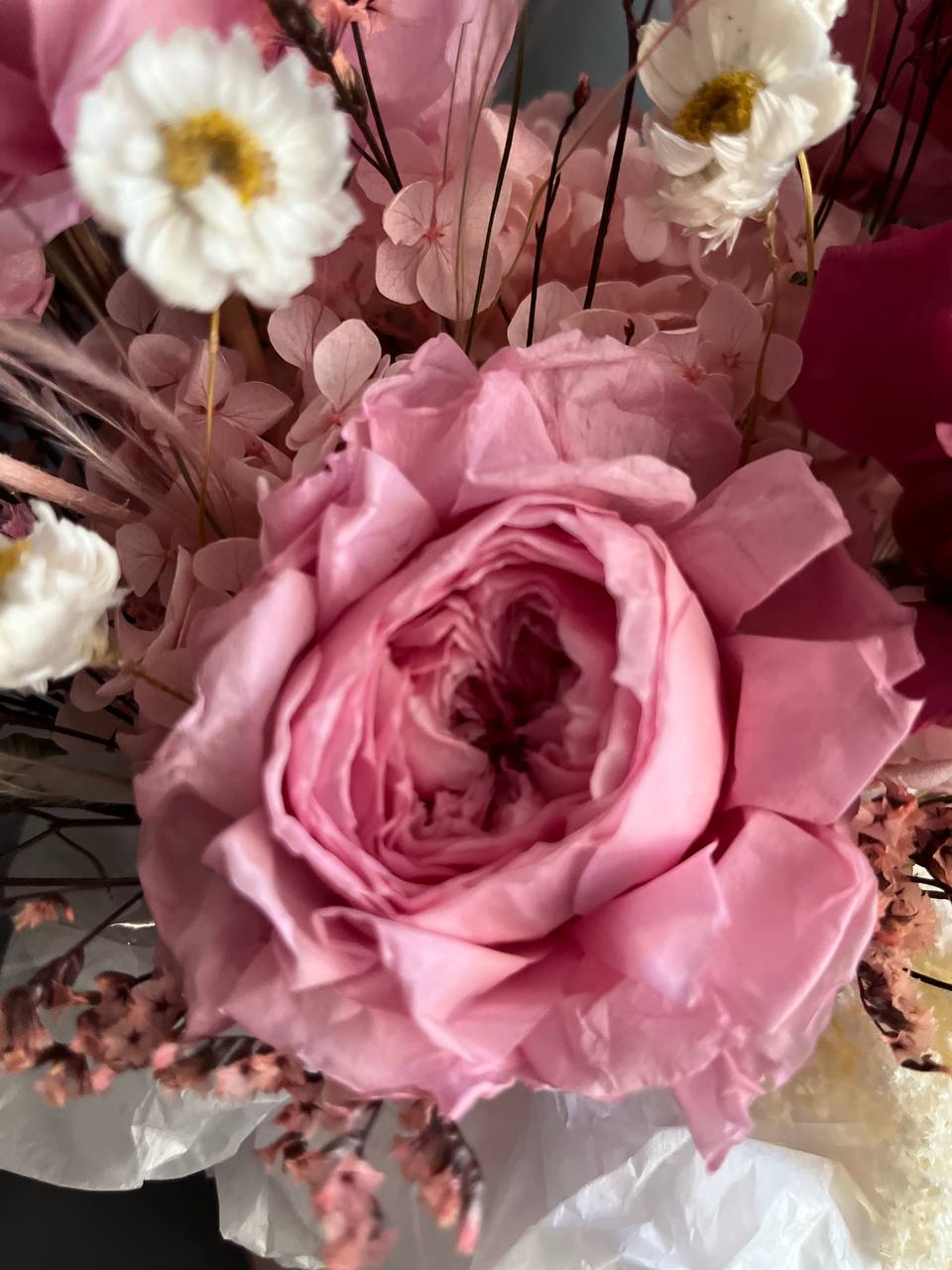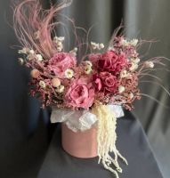 Коробка с пионовидми розами станет отличным подарком для любого случая и идеально впишется в интерьер.