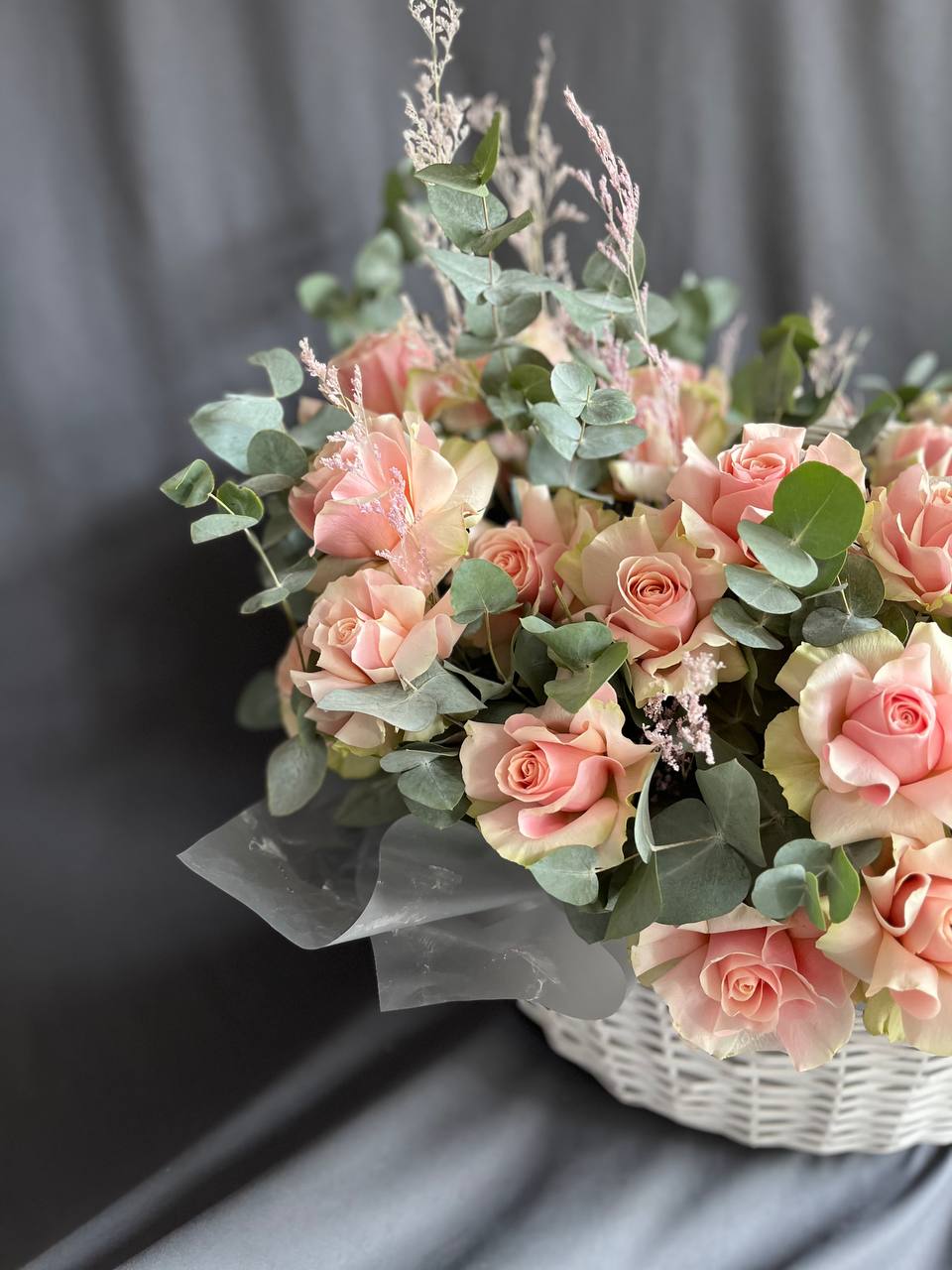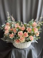 Запечатлейте мгновение летнего уюта. Наша большая корзина с розами — это не просто букет, а самодостаточный элемент декора, который будет радовать вас годами. Пышная, фактурная, наполненная теплыми оттенками солнца, спелых колосьев и нежных соцветий, эта композиция станет центром притяжения в любой комнате.