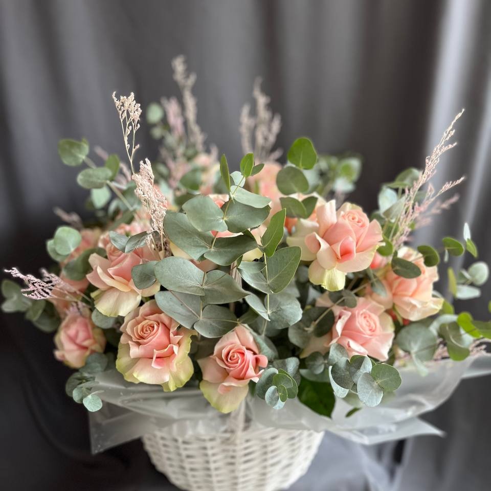 Запечатлейте мгновение летнего уюта. Наша большая корзина с розами — это не просто букет, а самодостаточный элемент декора, который будет радовать вас годами. Пышная, фактурная, наполненная теплыми оттенками солнца, спелых колосьев и нежных соцветий, эта композиция станет центром притяжения в любой комнате.