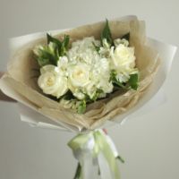 Представляем наш изящный небольшой белый букет — воплощение нежности, чистоты и элегантности. Собранный из самых свежих и деликатных белых цветов, этот компактный букет излучает утонченность и спокойствие. Он идеально подойдет, когда хочется выразить искренность и теплоту без лишних слов.