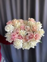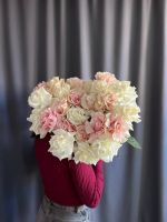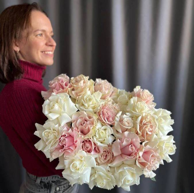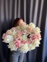 Пышный букет, собранный из самых роскошных французских роз. Подарок, достойный королевы, олицетворяющий восхищение и глубокие чувства.