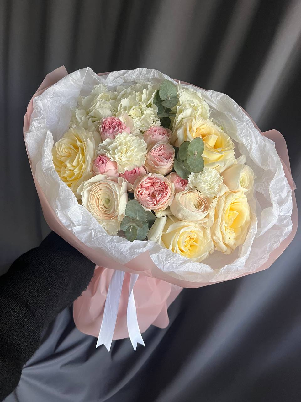 Идеальная форма, сдержанная палитра и элегантная гармония. Этот букет говорит о вечной красоте, тонком вкусе и глубоких чувствах. Символизирует надежность и искренность.